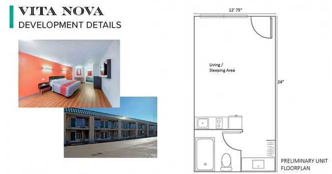 In Phase 1, OCHA will transform the motel’s 310-square foot units into studio apartments and create additional common area and meeting spaces. In Phase 2, OCHA will renovate the on-site commercial kitchen, dining hall and common spaces to provide wrap-around services to residents.